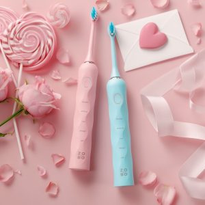 DT1013 Elektrisko zobu birstu ZoBo komplekts: Rozā + Gaiši zila.